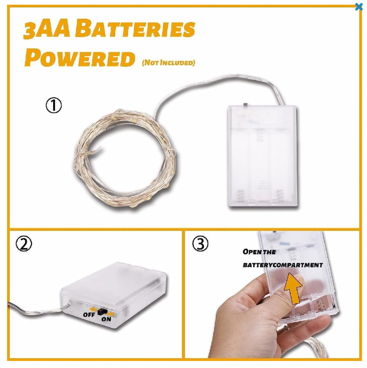 16 foot long - battery operated 3 AA batteries (not included) - weather resistant