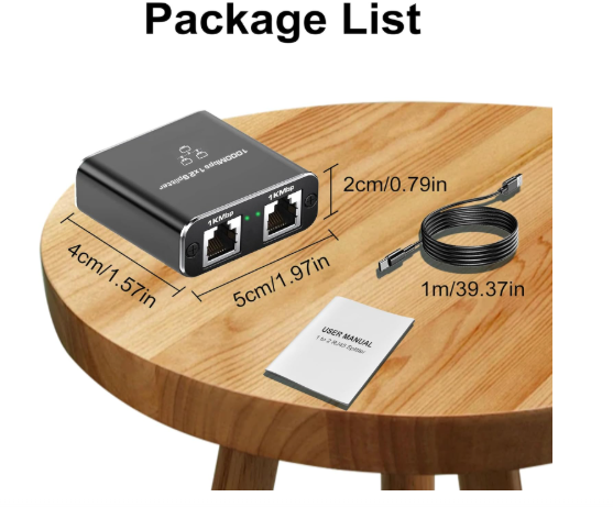 - Ethernet Splitter: This Gigabit Ethernet splitter is designed to solve connection problems caused by insufficient cabling. Powered by the included USB cable(39.3in), it supports two computers to share an Ethernet line at the same time. It is a simple and efficient network splitter that helps you expand your network ports