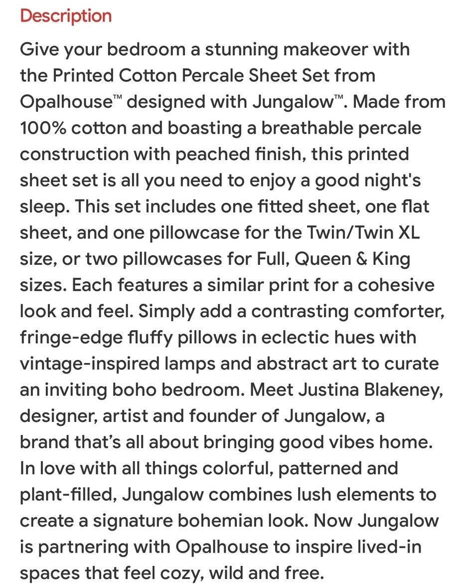 Opalhouse Full Size 4 pc Bohemian Style Bedding Sheet Set