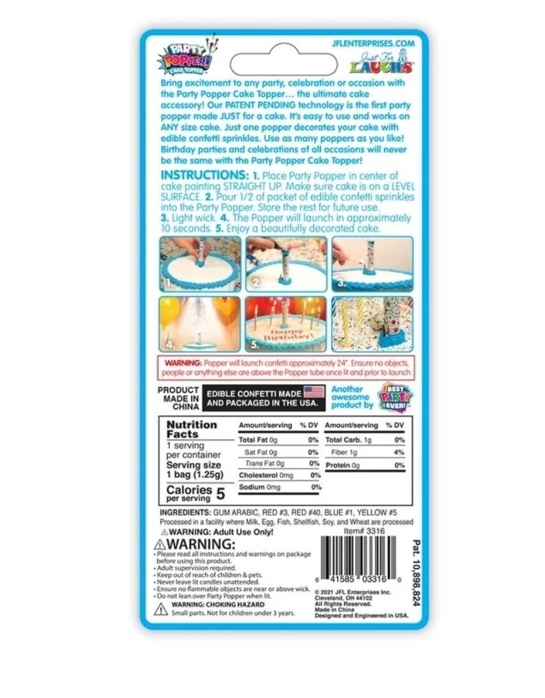 Party Popper Cake Topper with Edible Confetti-Set of 3