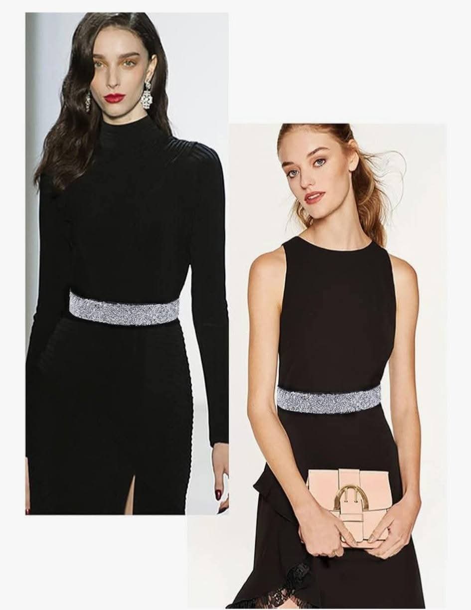 - Rhinestone elastic PU leather belt